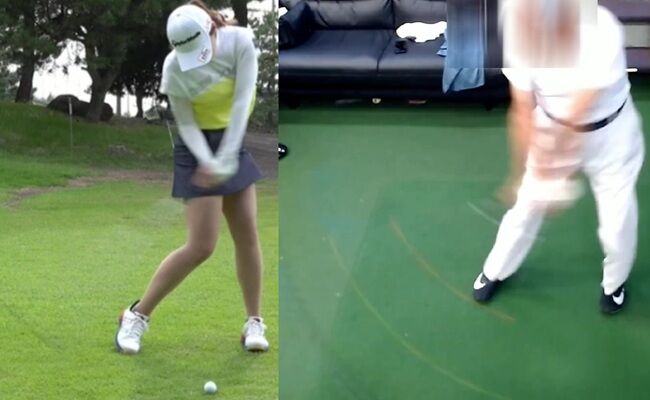 👉十中八九、シャフトをしならせて~しなり戻すスイング