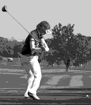 ➡ヘッドの打点は重心位置に近く、それはシャフトから重心距離分だ け離れていますから、シャフトを直にボールにはぶつけられません。