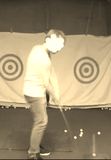 からだで腕やクラブの重さを引っ張ろうとすると