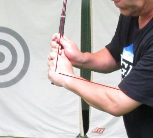 『インパクトまでの早い段階で、右腕を伸ばしきる』 コトです。