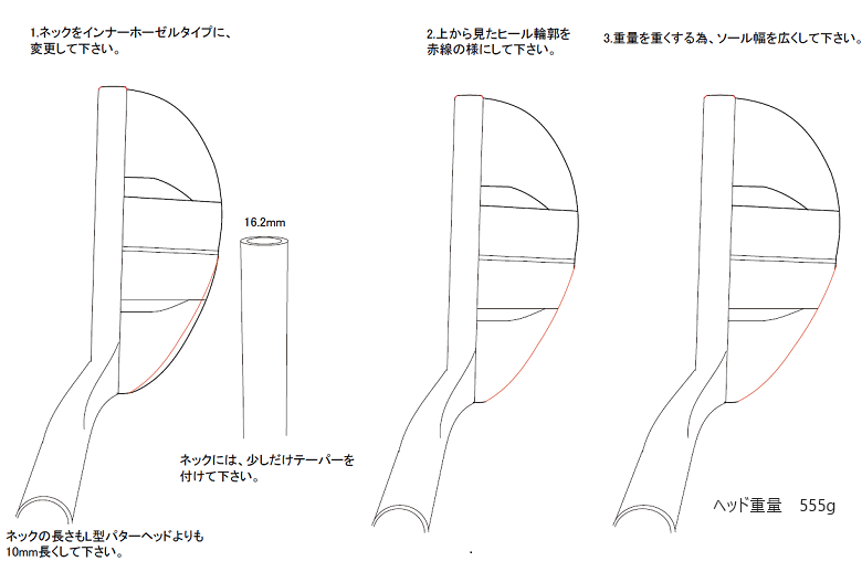 ⑤ ネック長をルール範囲で出来るだけ取り重量を稼ぎます
