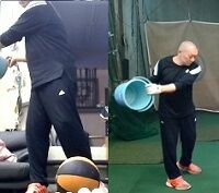 それの乗っかっている 骨盤が水平っぽく向きを変えている ので そこで 肩にかかっている『重さ』に逆らって 肩部を意識的に水平に廻ろうとしたら、 腕は下がらない、クラブは降りない、 肩は水平に廻るけど、からだ全体がギッタンバッコン って結果になり易いと思うんですね。 重さが縦にかかっている上に 回転などの動作も入っていますから ソレはかなりの重さになると思います。 その重さに逆らったら リキマざるを得ませんし、 リキミって動作としては『止まり』ですから 腕遅れになります、ならざるを得ない。