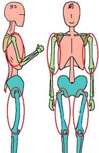 脚で言えば 膝かた股関節まの大腿左右合計ですと 4か所 になると思います。自分の意志で積極的に動かすのは その『四肢』股関節から腕の生えている肩までの胴体部分はそれに対し 防衛本能が強く働く場所 になりますので自然に任せ、胴体内を積極的に動かさない方が良いでしょう。Ⓡさんの動きを見ていると『肩を廻そう』と言う動きが機能として腕の一部である肩部 ではなく肩の生えた 両肩のライン・胴体部分